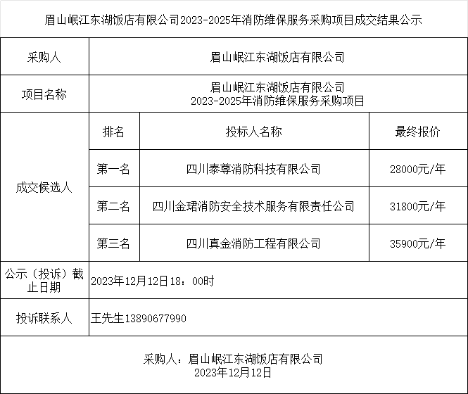 2023-2025年消防維保服務(wù)采購項目成交結(jié)果公示