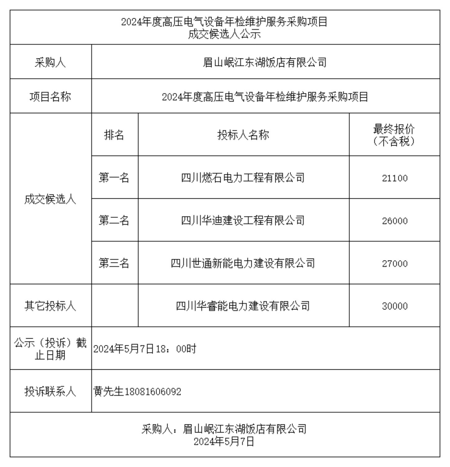 2024年度高壓電氣設備年檢維護服務采購項目成交候選人公示
