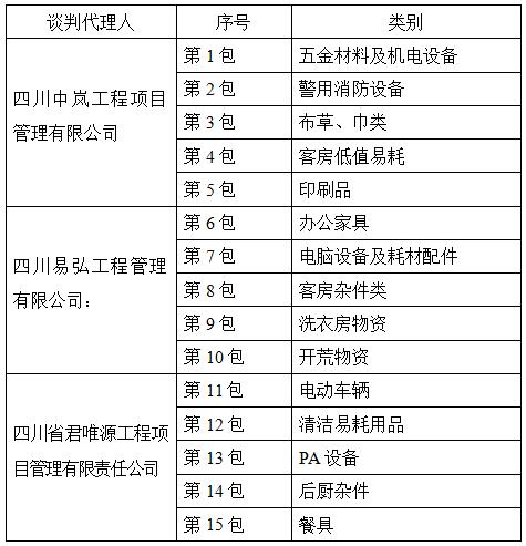 因四川玉屏山旅游資源開發(fā)有限公司玉屏山森林康養(yǎng)度假酒店經(jīng)營需要,現(xiàn)委托各代理機(jī)構(gòu)以競爭性談判方式采購酒店經(jīng)營貨物,茲邀請(qǐng)符合本次競爭性談判要求的商家參加采購談判。